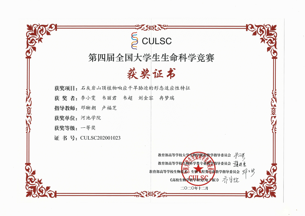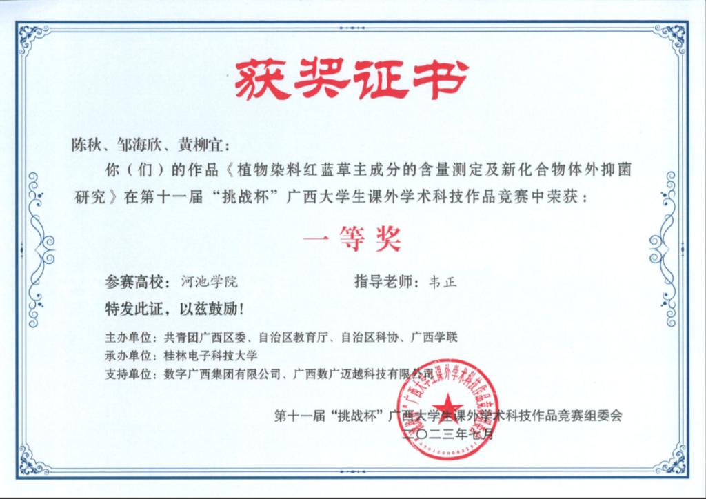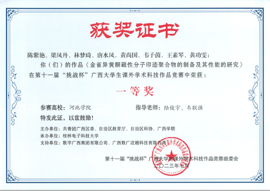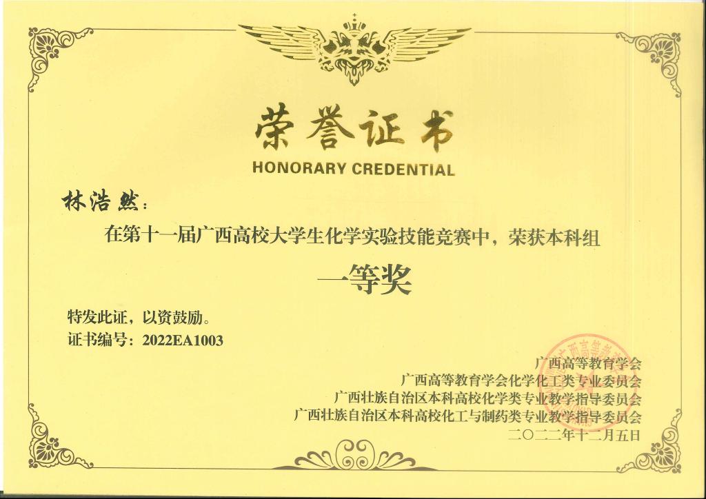 第十一届广西高校大学生化学实验技能竞赛一等奖