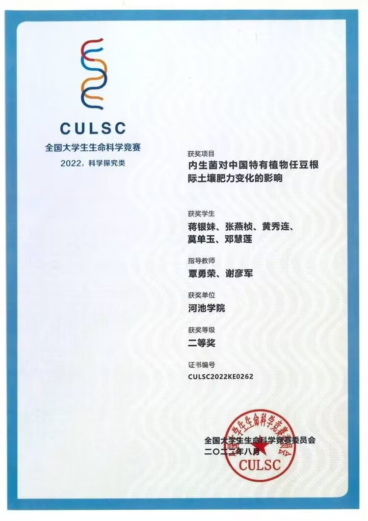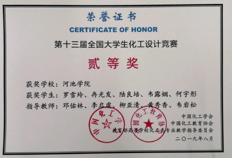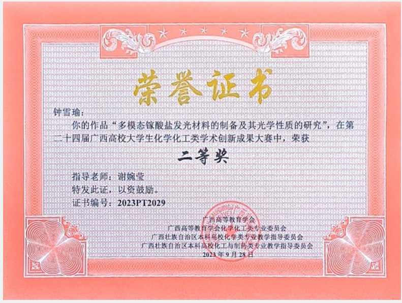 第二十四届广西高校大学生化学化工类学术创新成果大赛二等奖
