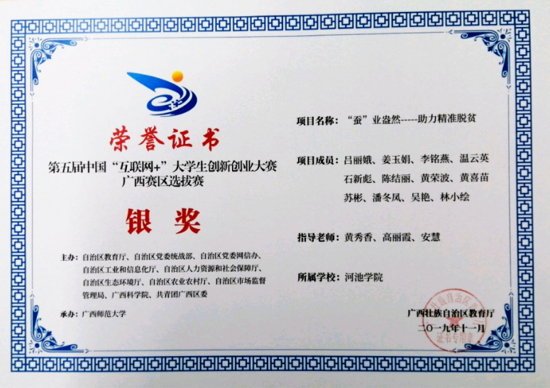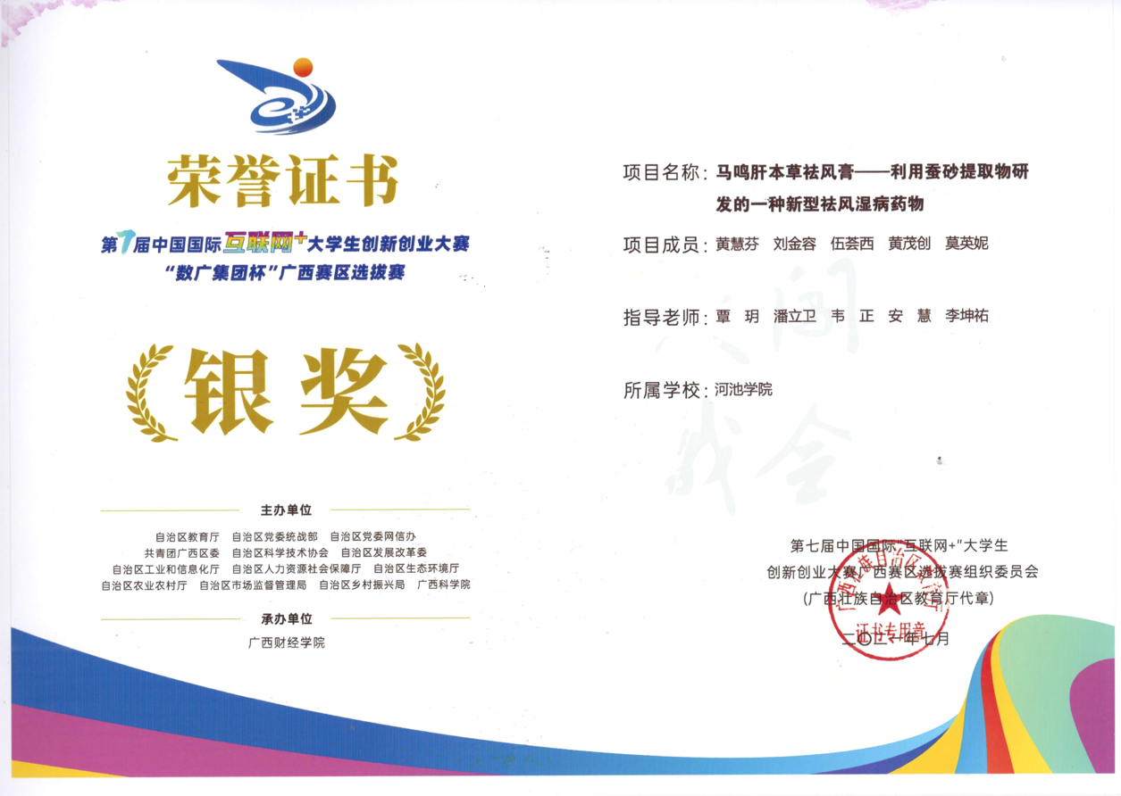 第五届中国“互联网+”大学生创新创业大赛广西赛区选拔赛银奖