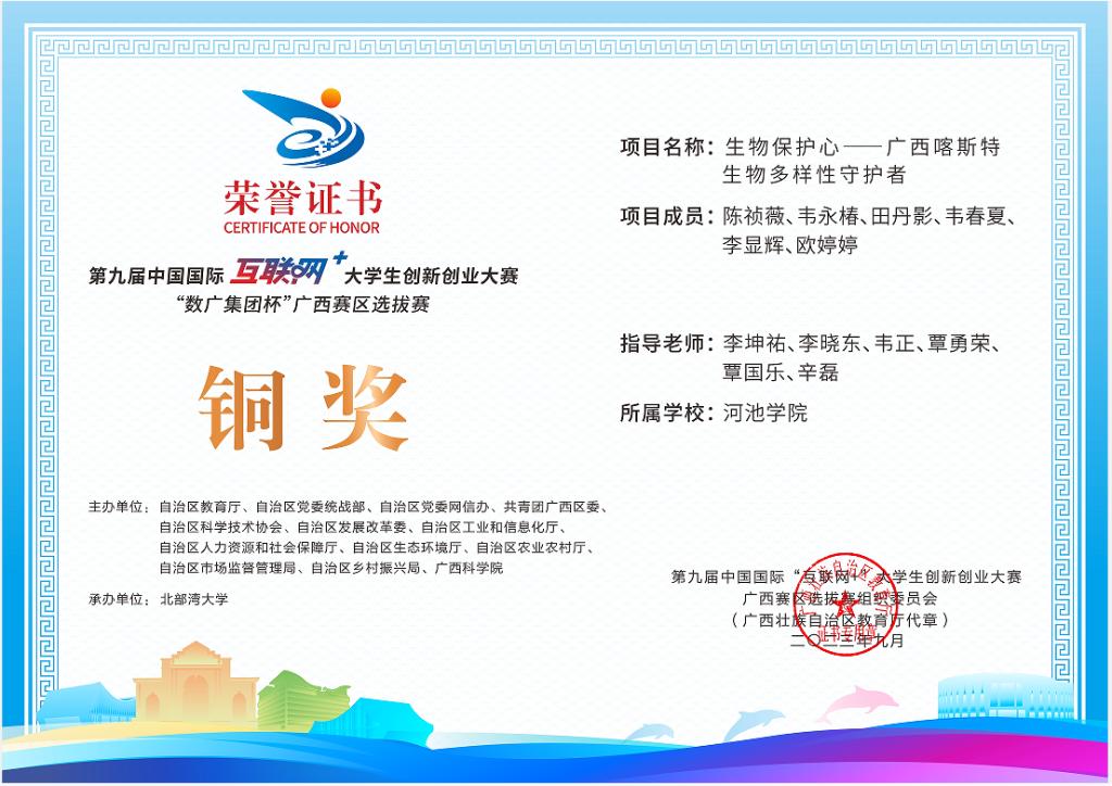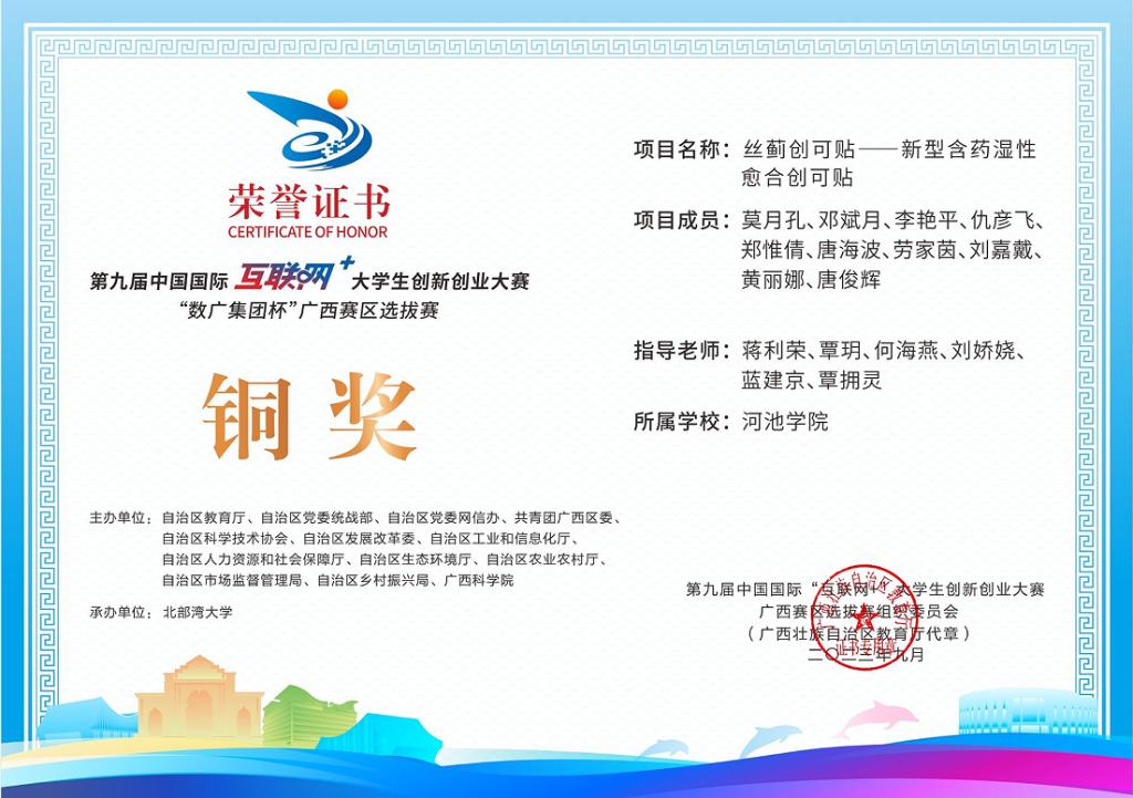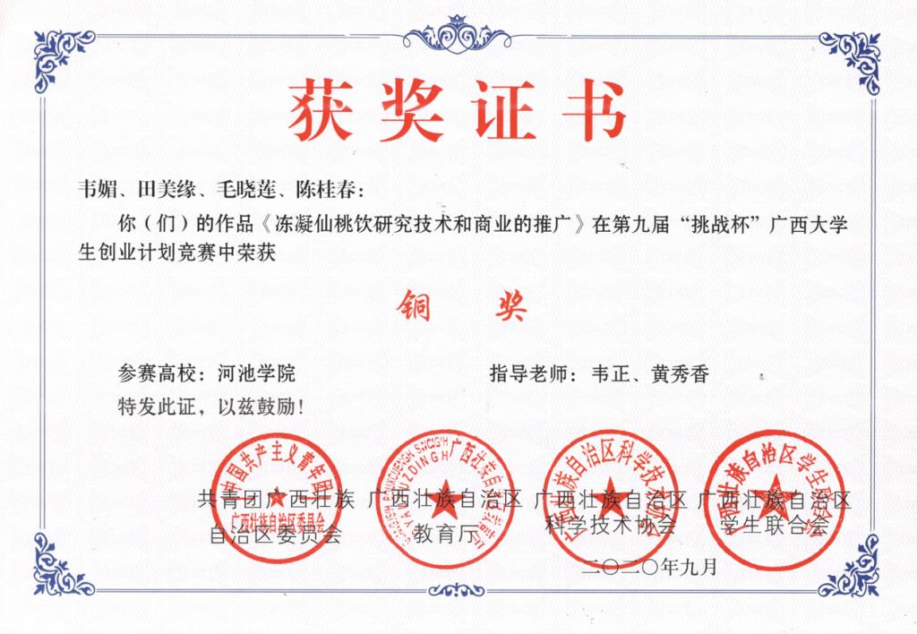 第九届“挑战杯”广西大学生创业计划竞赛铜奖