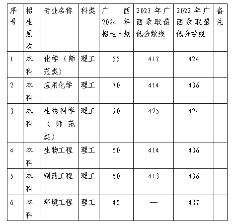 学院高度重视学科和专业建设。学院目前开设化学、应用化学、生物科学、生物工程、制药工程、环境工程六个本科专业。“生物化工”为广西重点学科,“应用化学”为广西高校重点学科,“生物与医药专业硕士”为2021-2025年自治区硕士学位授权建设点。生物科学和应用化学为自治区级一流专业建设点;《分析化学》和《仪器分析》为自治区级普通本科高校课程思政示范课程;《动物学》、《动植物野外实践》、《广西生态环境保护》和《聚丙烯生产工艺操作过程虚拟仿真实验》为自治区级一流本科课程。