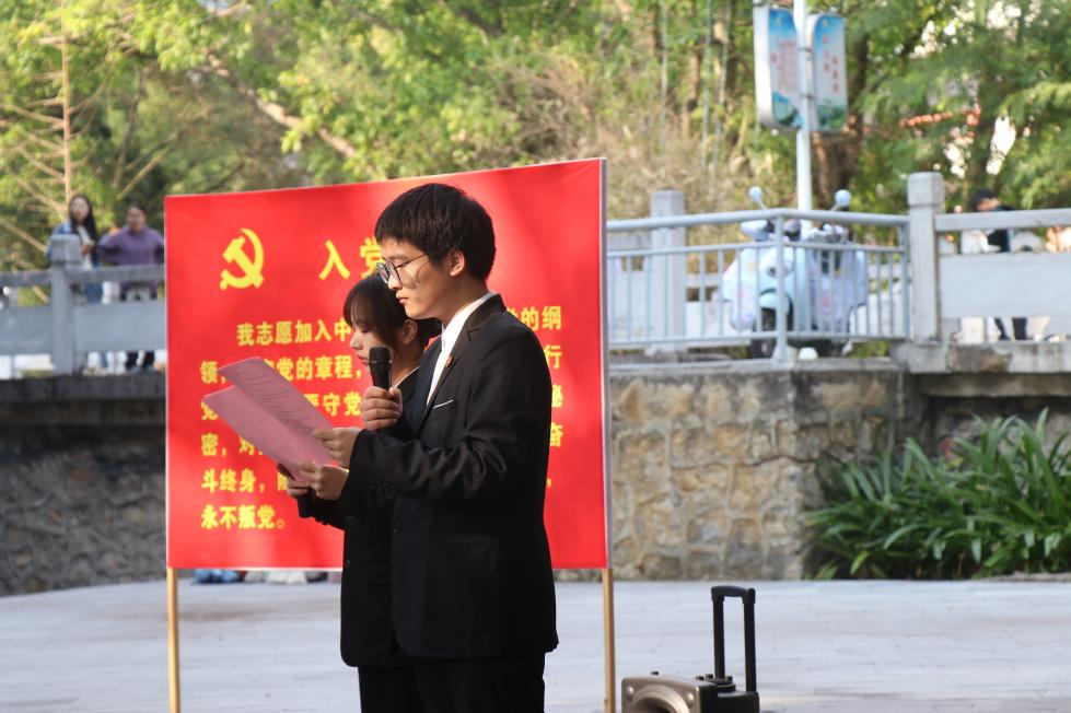 党日活动上,主持人宣布活动议程并依次进行,在场的党员同志重温入党誓词、诵读《中国共产党章程》中关于党员的权利和义务。全体师生带来大合唱,嘹亮的歌声,唤起中华儿女的自豪和向往;优美的旋律,奏响中华民族伟大复兴的乐章。
