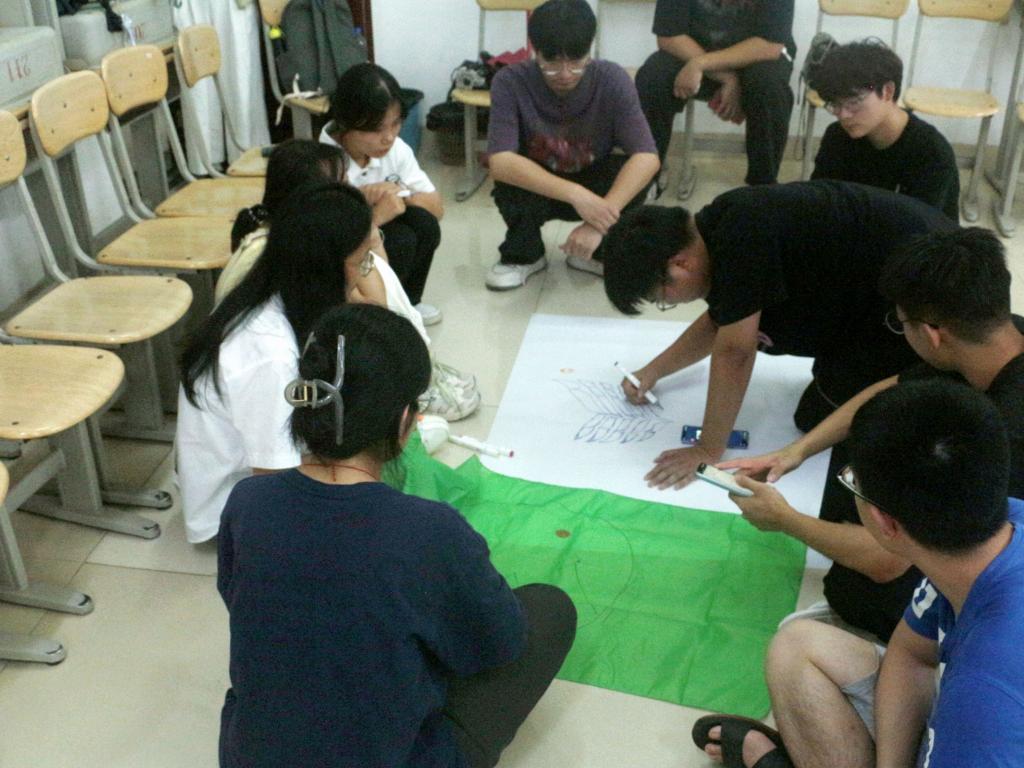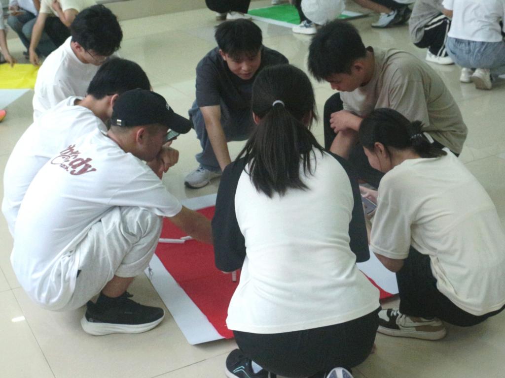 本次活动共四个环节,分别是“爱的抱抱”、“滚雪球”、“团队建设”和“大团圆”。活动现场气氛热烈,同学们积极参与、热情十足。在“爱的抱抱”环节中,同学们随机应变,体现出同学们的反应力和凝聚力;在“滚雪球”环节中,同学们进行自我介绍,展示自身优点,这不仅促进彼此认识,也让他们更快地熟悉班级;在“团队建设”活动中,同学们分工明确、合作交流,共同设计班徽、口号和班旗,增强了同学们团队协作能力,拉近彼此间的距离。最后,在“大团圆”中,同学们围成一圈认真思考,互相分享着对此次活动的感受与收获,既提高了自我认识,也让他们对大学未来四年有了初步设想。