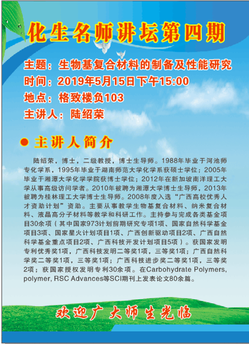化生名师讲坛第四期——生物基复合材料的制备及性能研究