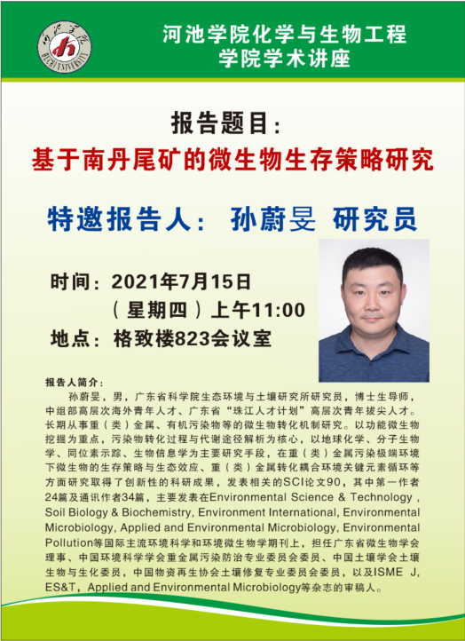 学术讲座:基于南丹尾矿的微生物生存策略研究
