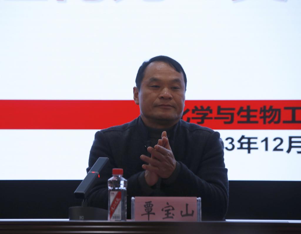 覃宝山为本次颁奖仪式致辞,回顾永利官网2023年取得的成绩,他指出,这些成就离不开校友和社会各位同仁的努力与支持,也离不开全体师生的共同努力与付出。他表示,再次感谢覃俭总经理等优秀校友对化生学院教育事业的关心与支持,以及对永利官网学子取得的优秀成绩感到骄傲与自豪。