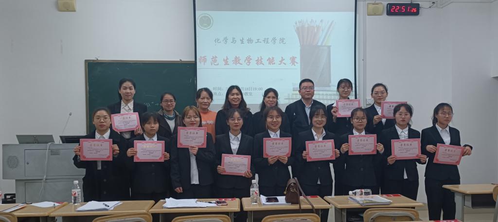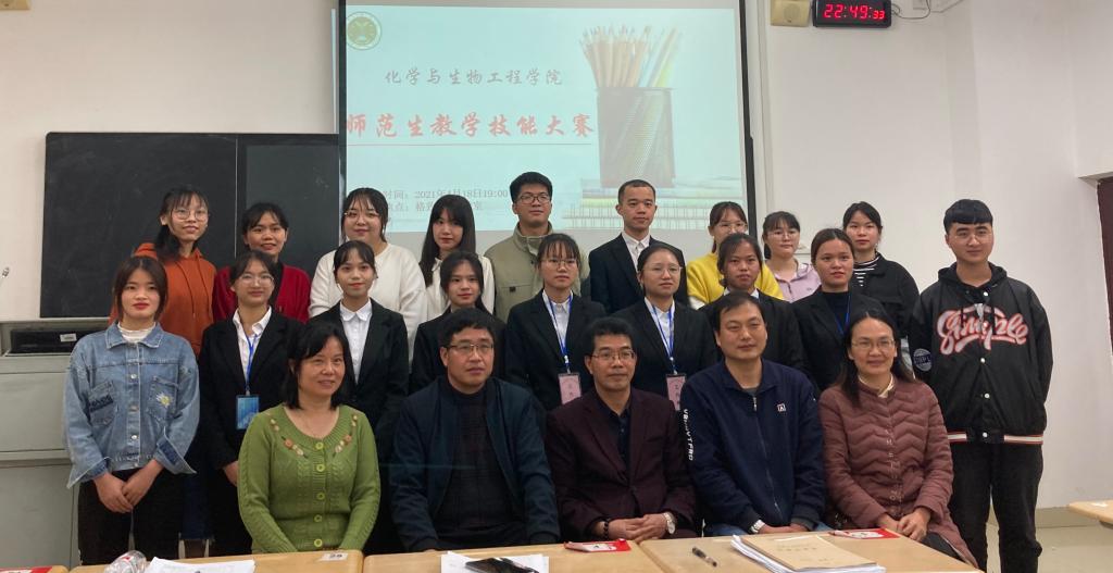 为激发师范生开展教学技能训练的积极性,加强师范生教学技能训练,进一步提升师范生教学技能,夯实教学基础,提高师范生培养质量,4月18日晚,永利集团304am登录在西区格致楼210、211教室举办师范生教学技能大赛。本次比赛由宜州高中林盛江、林代燕,永利集团304am登录附中兰国艺、黄小华,永利官网黄秀香、赖红芳、陆俊宇、邓晰朝、覃玥、谢彦军等教师担任评委。
