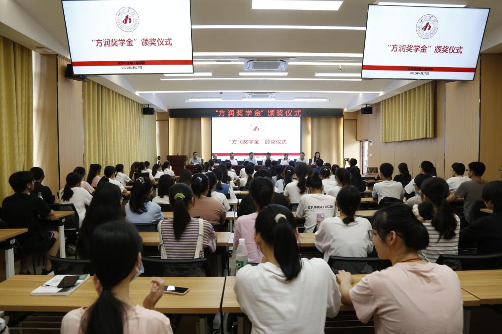 韦文广介绍了我校概况和近年来学校在社会各界支持下取得优秀成绩,他对深圳市方润环境科技有限公司为学生提供奖学金,激励学生全面发展的义举表示感谢。对同学们提出了三点希望,要坚定信念,做有理想、有抱负的青年大学生;要勤奋学习,做有知识、有才干的青年大学生;要修身明德,做有品德、有魅力的青年大学生,把对远大理想的向往与追求转化为实实在在的行动。深圳市方润环境科技有限公司董事长张刚介绍了企业情况并寄语同学们要勤奋好学,敢于担当,青春正当时,不负韶华地执着追求梦想。