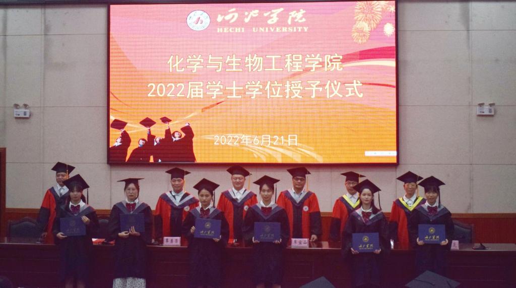 伴随着国歌的响起,2022届毕业典礼暨学士学位授予仪式正式开始。化生学院院长李晓东致辞中对2022届毕业生取得学士学位表示热烈地祝贺,希望毕业生们不忘母校,谨遵老师教诲,锐意进取。宣读2022年永利集团304am登录院校级优秀毕业论文获奖名单后向获得者颁发荣誉证书。学位授予仪式完成,象征毕业生已学有所成,可以展翅高飞。毕业典礼上,风华正茂的毕业生们身着学士服,脸上的洋溢着喜悦的笑容。化生学院的各位领导与教授、老师们流露出对毕业生们期盼和不舍。毕业生们每五人一组一次上台,他们满含感激,向老师们鞠躬致谢。