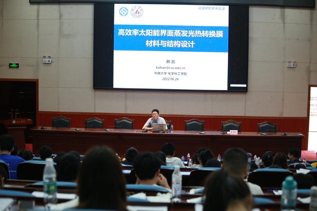 首先,进行的是中南大学刘广义教授关于功能表面活性分子设计、界面基础与绿色化工的讲座,刘广义教授从亲水基、疏水基等方面为老师同学们展开分享,并举例身边事物由浅入深向老师同学们讲解。其次,进行的是李海普教授关于水龙头的守卫的讲座,李海普教授不仅和老师同学们分享了关于她与她的团队关于饮用水这方面的研究,更强调应该将身边与生活息息相关的问题带到研究当中去,做研究时应该多思考多行动。最后,进行的是韩凯副教授关于高效率太阳能界面蒸发光热转换膜材料与结构设计的讲座,韩凯副教授分别从太阳能蒸发技术、界面蒸发平台、界面调控和废有机溶剂等方面为大家展开学习交流。在每位教授分享完各自的学术成果之后,到了提问环节,师生们积极提问,现场氛围活跃,几位教授对提出的问题都耐心细致地回答。