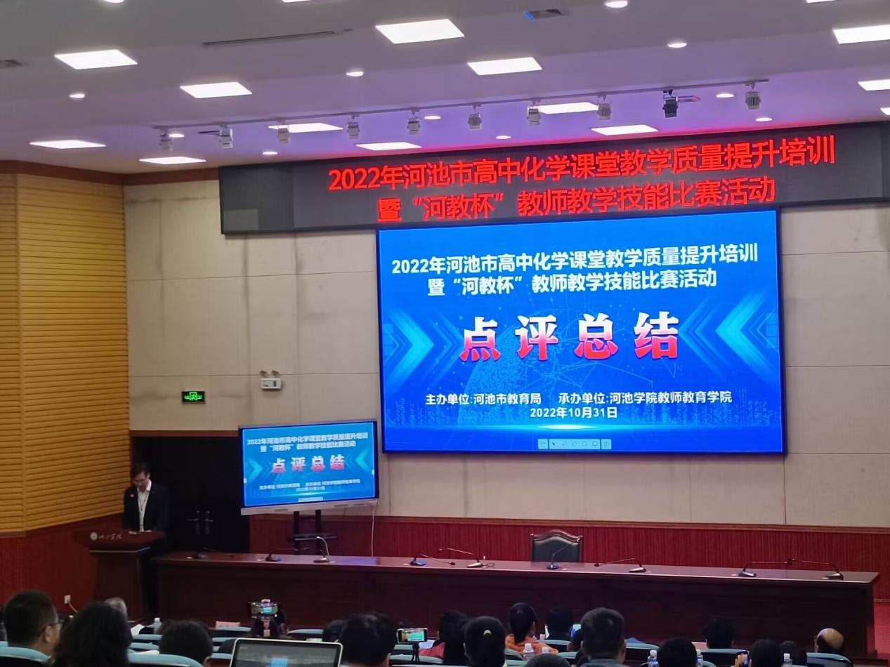 10月31日,2022年河池市高中化学课堂教学质量提升培训暨“河教杯”教师教学技能比赛活动在我校东区弘毅楼1区205会议室举办,本次活动由河池市教育局主办,永利集团304am登录教师教育学院承办,河池市高中化学教师代表,以及我校部分师生代表参加活动。