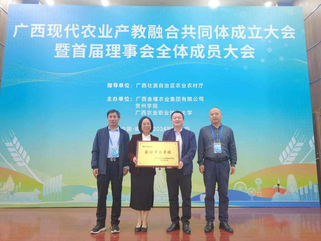 “广西现代农业产教融合共同体”是由自治区农业农村厅、广西金穗农业集团有限公司、贺州学院和广西农业职业技术大学作为共同牵头单位,联合行业组织、学校、科研机构和上下游企业组建成立。