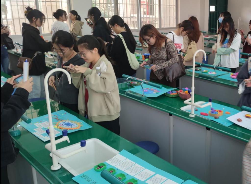 永利官网师生在环江二高参观高中生生物学建模作品展