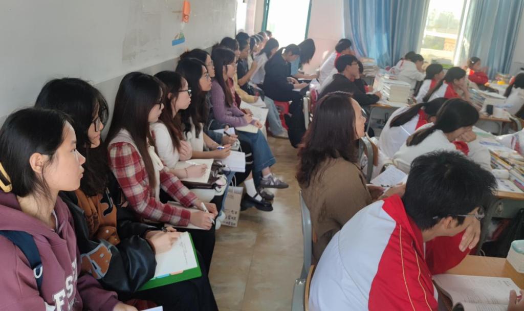 11日上午,永利官网师生一行来到环江高中,认真聆听骨干教师的生物学课堂教学示范课,做好听课记录以及教学反思,课后同学们与授课教师进行了亲切地交谈。下午,环江高中德育处主任卢天长,生物学高级教师韦朗朗,韦向娜老师就班级管理经验、生物学备课注意事项及教学经验、教育研究、教师职业发展规划等内容进行交流和讨论。