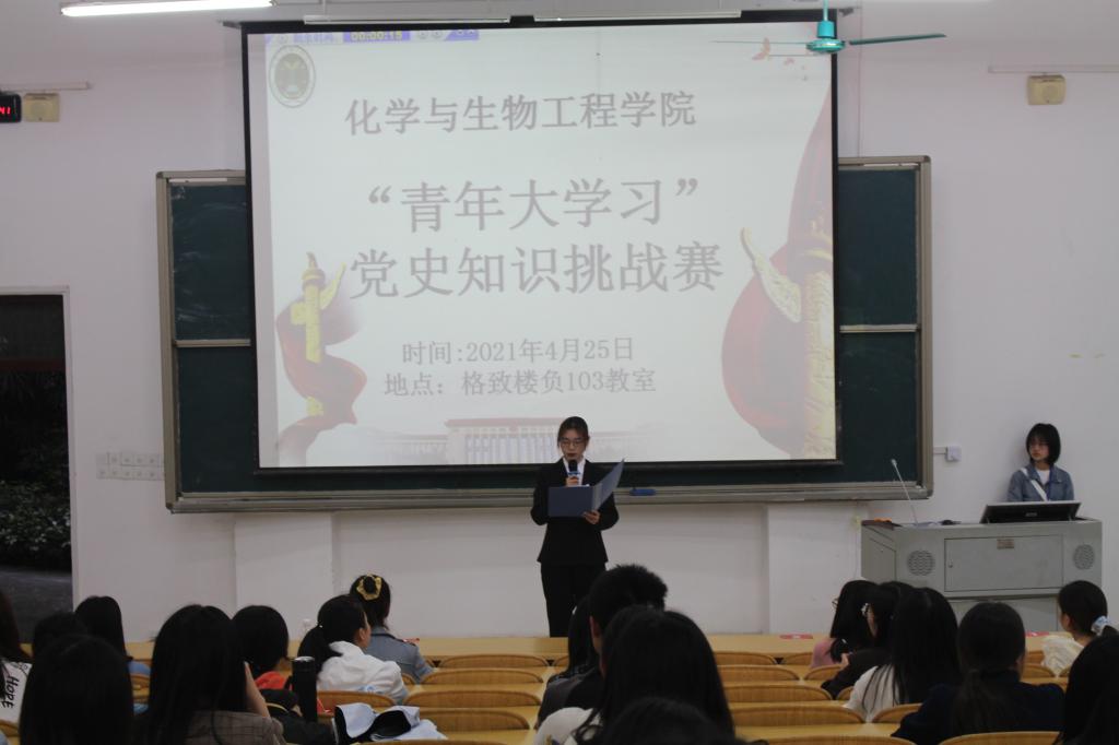 永利官网于4月25日在格致楼-103教室举办了化生学院“学党史、强信念、跟党走”2021年广西青年大学习党史知识挑战赛。