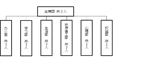 第十三条 学生会设部门有主席团、办公室、学习部、生活部、志愿者工作部、心理部、权益部。