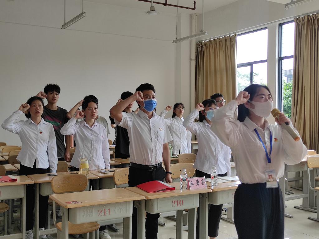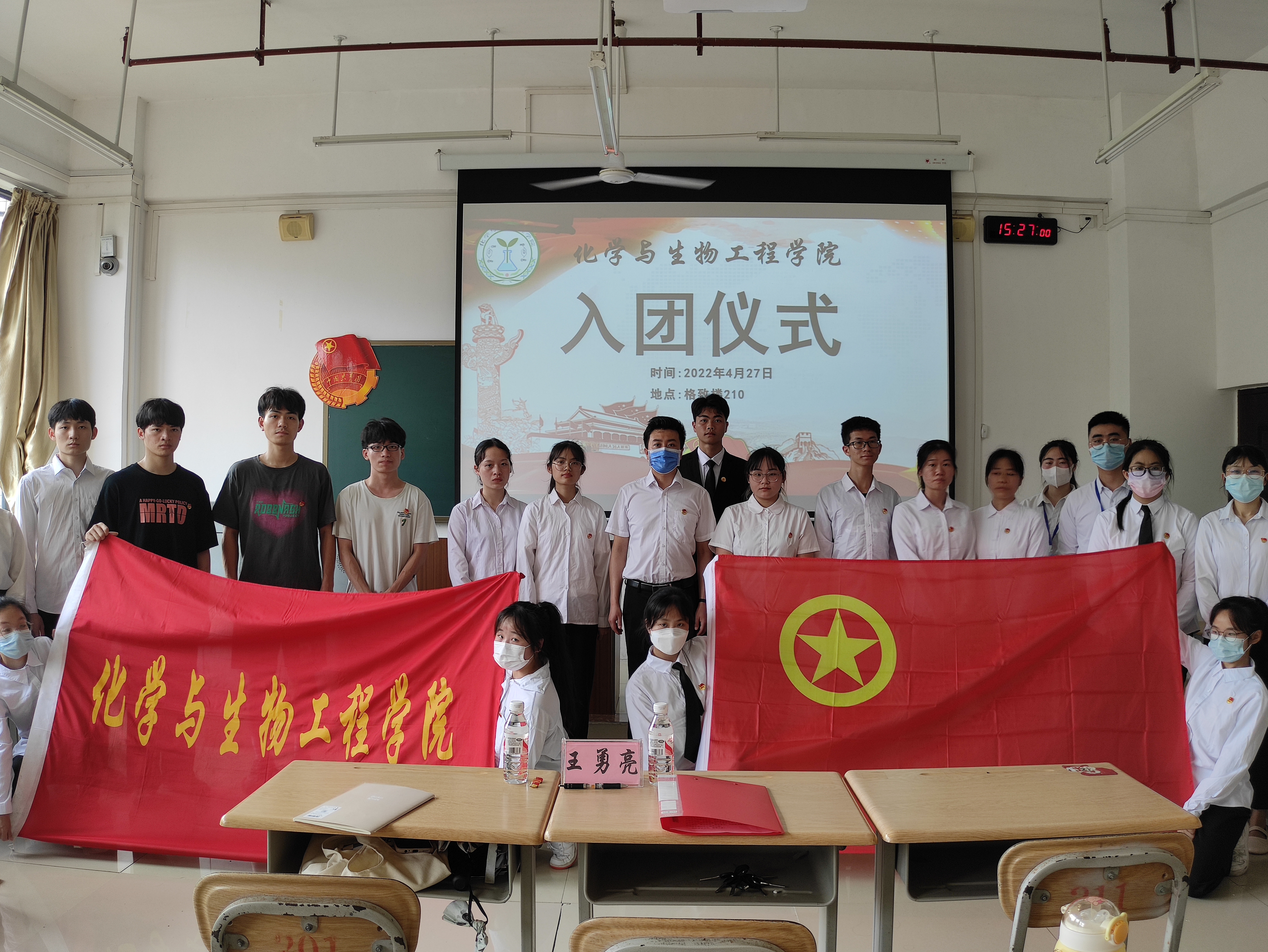 永利官网于4月27日下午在格致楼210教室举行2022年新团员入团仪式,永利官网团委书记王勇亮、团委学生副书记黄莹及2022年新团员参加本次入团仪式。