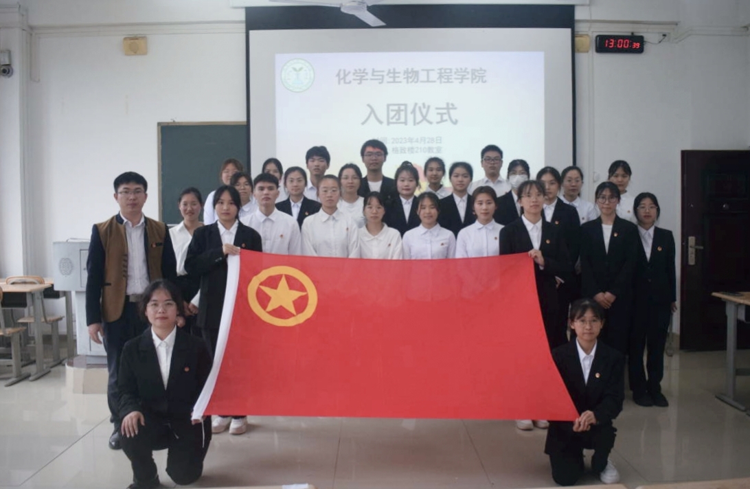4月28日,永利集团304am登录在格致楼210教室举行2023年新团员入团仪式。永利集团304am登录党委副书记韦正,团委书记王勇亮及老团员代表、全体新团员参加此次入团仪式。