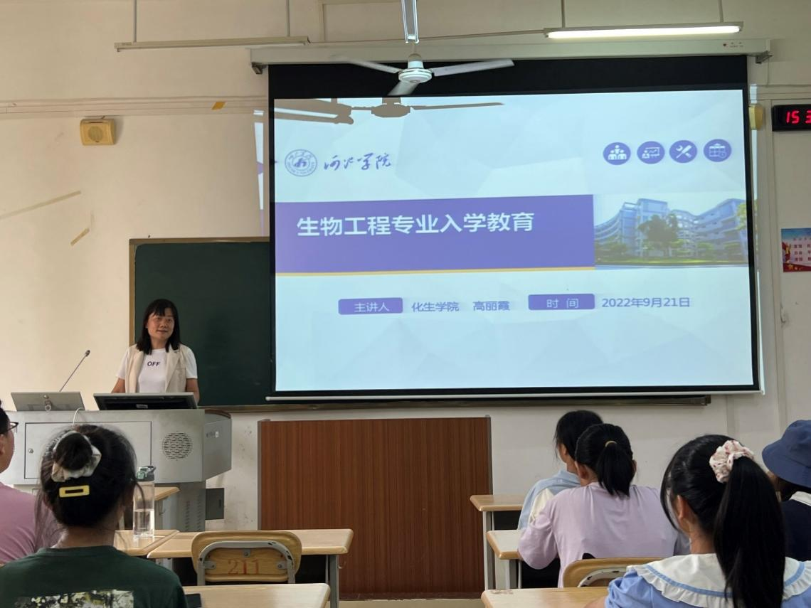 为了帮助新生对所学专业有更加全面的了解,激发新生对本专业的热爱,明确对未来的职业发展方向。9月21日,化生学院召开2022级新生入学专业教育会。本次专业教育分生物科学、制药工程、生物工程、应用化学、化学、环境工程六个专业进行,分别由各专业责任教授担任主讲。