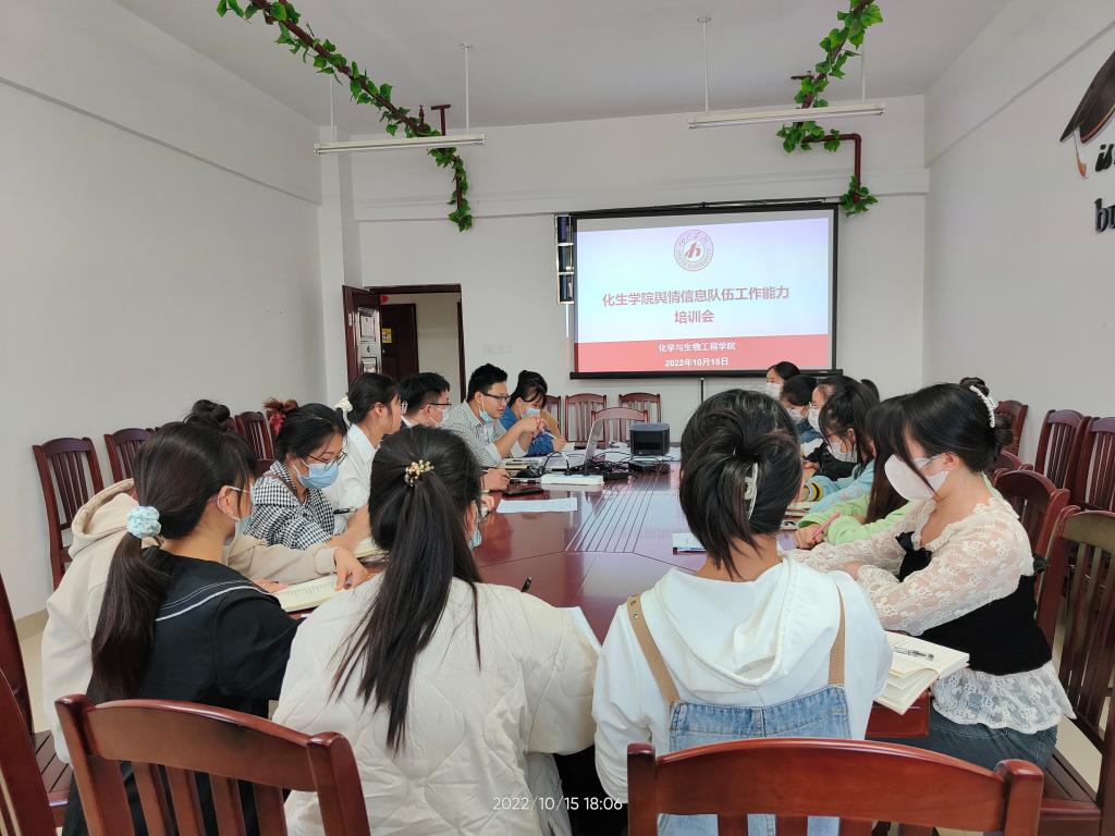 为了加强校园网络舆情的引导,及时、准确发布新闻报道,讲好化生学院故事。10月15日下午,化生学院在格致楼814会议室召开舆情信息队伍工作能力培训会。学院党委副书记韦正出席培训会,党支部、团委、学生会、易班等宣传部门及各班级负责人参加会议。会议由辅导员李坤祐主持。