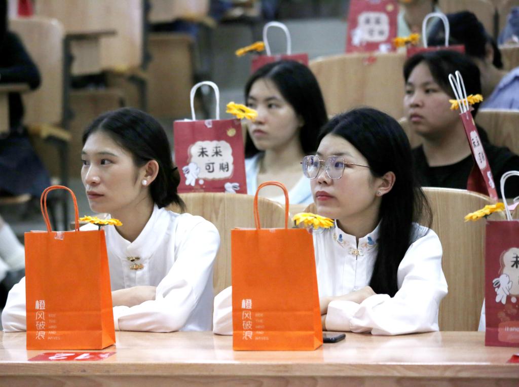 李坤祐从档案及党员、积极分子和团员材料的注意事项、诚信教育、文明离校、廉洁教育、心理健康教育、就业从业教育、法治安全教育等八个方面给毕业生们提出希望与建议,他希望毕业生们能牢牢记住校训:“修德、弘毅、勤业、致远”,在今后的工作生活中做到爱国、敬业、诚信、友善,成为一个有骨气、有底气、有志气的人。同时,他还精心准备毕业礼物与制作记录2023届毕业生四年来的成长视频,现场充满着快乐与温馨。(拍摄:李赞菲、诸葛臣文 作者:李赞菲、诸葛臣文 校对:覃凤香 审核:覃宝山)