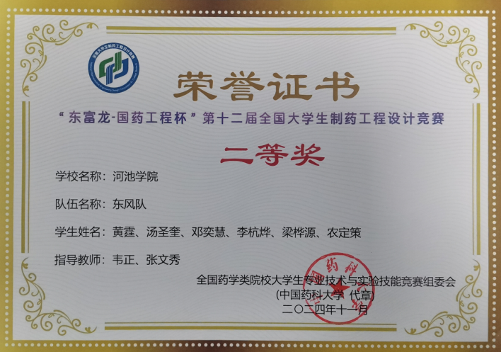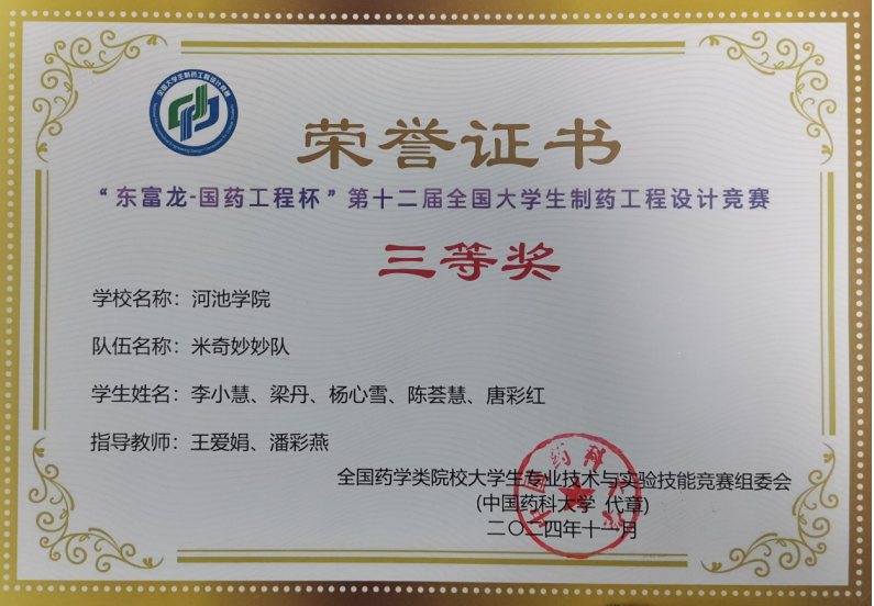 【喜讯】我校学子在第十二届全国大学生制药工程设计竞赛中喜获佳绩
