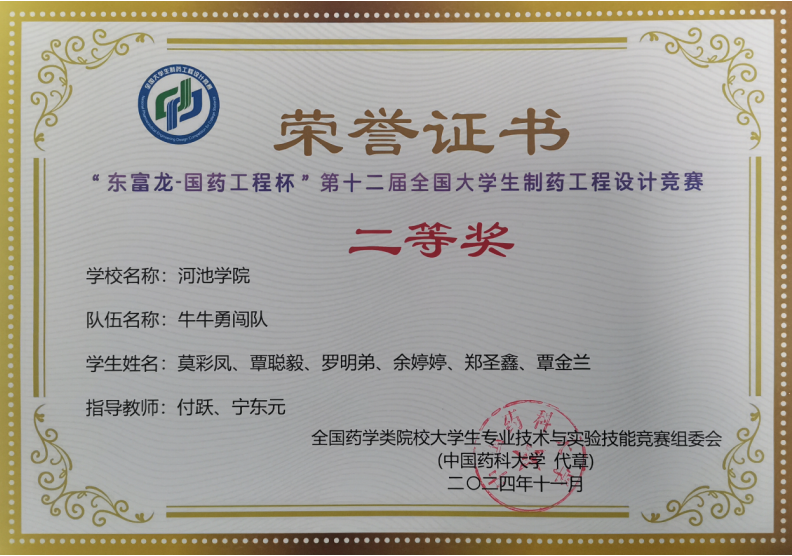 近日,“东富龙-国药工程杯”第十二届全国大学生制药工程设计竞赛传来喜讯,我校永利集团304am登录参赛团队在竞赛中喜获佳绩,获国家级二等奖2项、三等奖1项。