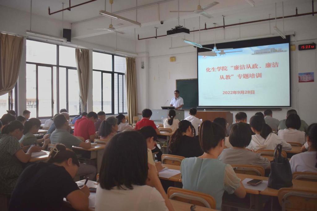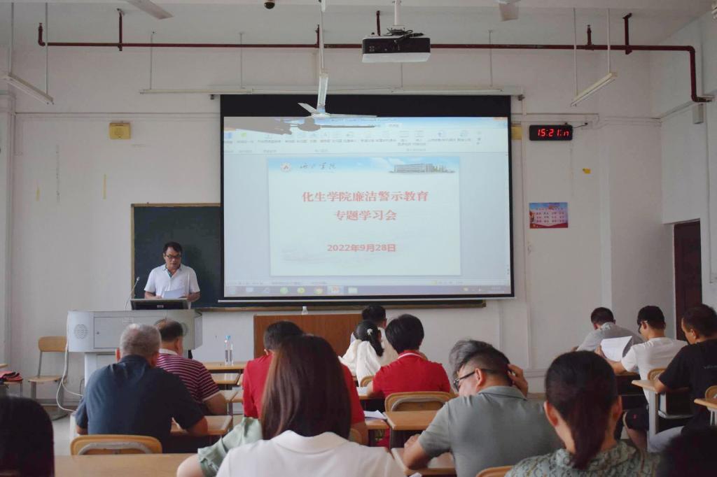 为了进一步强化警示教育意识,提高教职工的思想认识和拒腐防变能力,营造风清气正、廉洁自律的校园。9月28日下午,永利集团304am登录在格致楼209教室召开“廉洁从政,廉洁从教”专题培训会。学院党委书记覃宝山、党委副书记韦正、副院长卢福芝、副院长陆俊宇及全体教职工参加会议,本次会议由党委书记覃宝山主持。