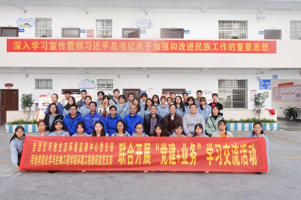11月10日,永利官网环境工程教研室党支部携手自治区河池生态环境监测中心党支部联合开展了“党建+业务”学习交流活动,我校银龄教师庄嘉教授、环境工程专业党员教师以及2020级环境工程专业的学生参加交流活动。