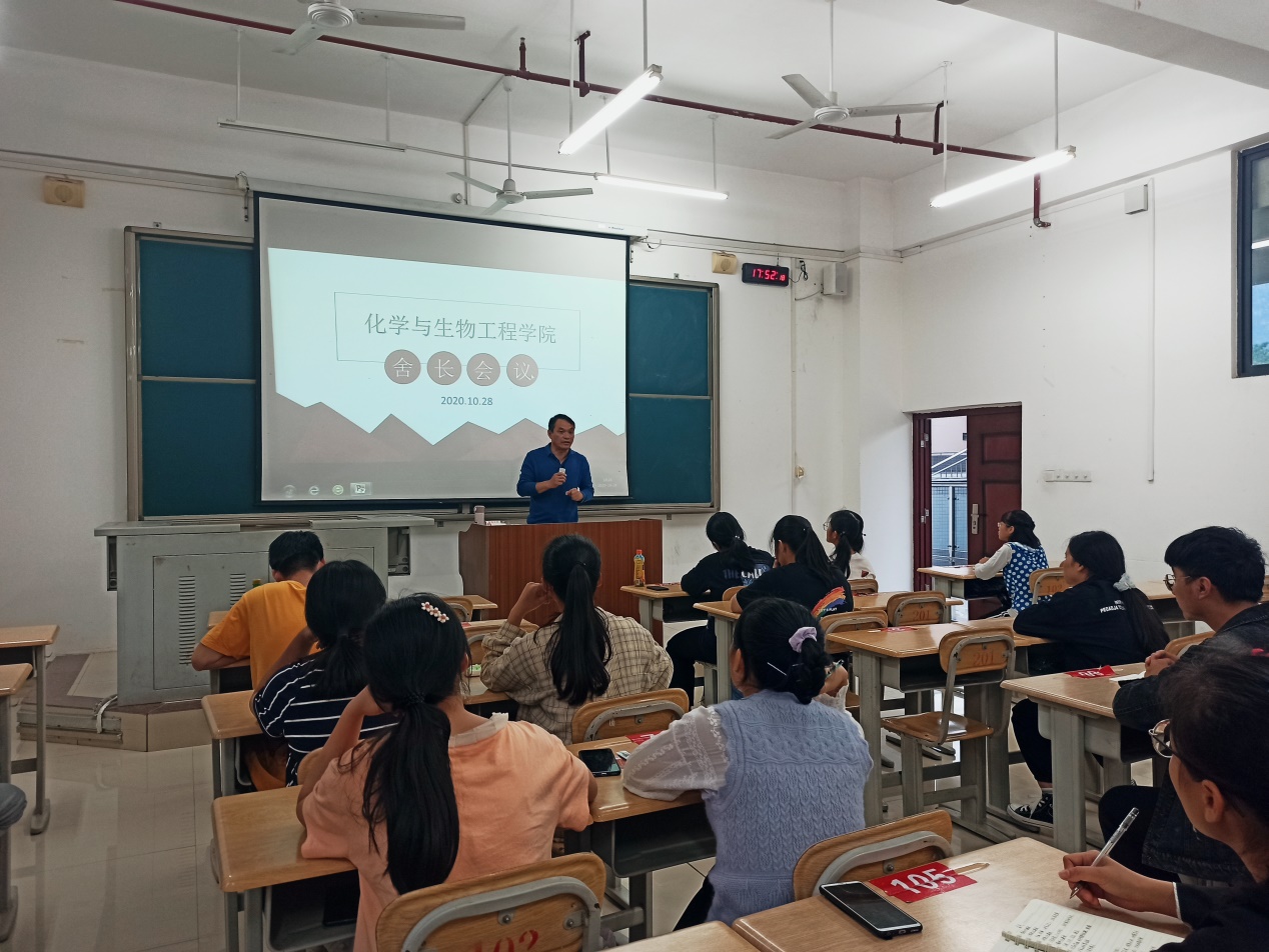 为进一步加强新生的宿舍管理,形成良好的学风和宿舍文化,10月28日下午,永利集团304am登录在西区格致楼101教室召开2020级舍长会议,化生学院党委副书记覃宝山、辅导员江思婷以及各新生宿舍长参加会议。