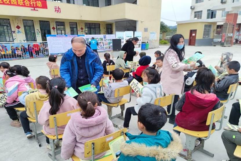 活动开始,由永利官网党委书记覃勇荣教授向社村小学的所有师生及部分家长介绍了中国南方喀斯特世界自然遗产的基本情况。他强调,环江是一个美丽神奇和令人神往的地方,拥有秀丽的自然风光和丰富多彩的生物物种资源,具不完全统计,仅木论自然保护区就有高等植物1460多种,还有大量珍稀的动物种类,珍稀的动植物资源需要大家一起去珍惜和保护。这次活动目的就是提高大家的生态环境保护意识,进行科普宣传,希望大家关注世界自然遗产保护的问题,珍爱生命,保护环境,热爱大自然,自觉参与木论自然保护区资源环境保护工作,从我做起,从小做起。大手牵小手,小手牵大手,小朋友们回家之后,也可以作为小老师向父母及家人宣传环保知识,传播世界自然遗产保护的知识,弘扬正能量,共同把世界自然遗产保护工作做好。