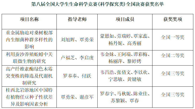 “全国大学生生命科学竞赛(CULSC)”是教育部认可的56项全国大学生学科竞赛之一,被誉为生命科学领域最权威、最具影响力的国家级大学生学科竞赛。学院高度重视学生基础理论学习与科研实践训练相结合,以赛促学、以赛促教,积极构建学生科研创新能力培养体系,促进学生全面发展。通过组织参赛进一步促进了生物相关学科教育教学改革,提高人才培养质量。(作者:卢福芝,张世浩 校对:劳旻旻 审核:覃宝山)