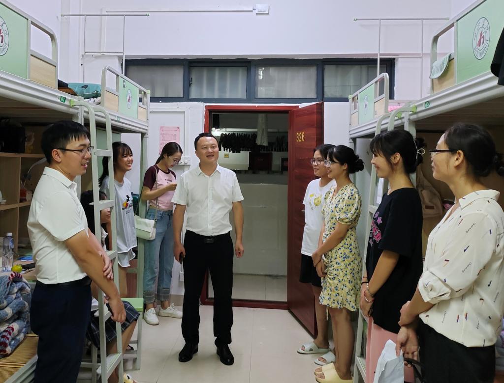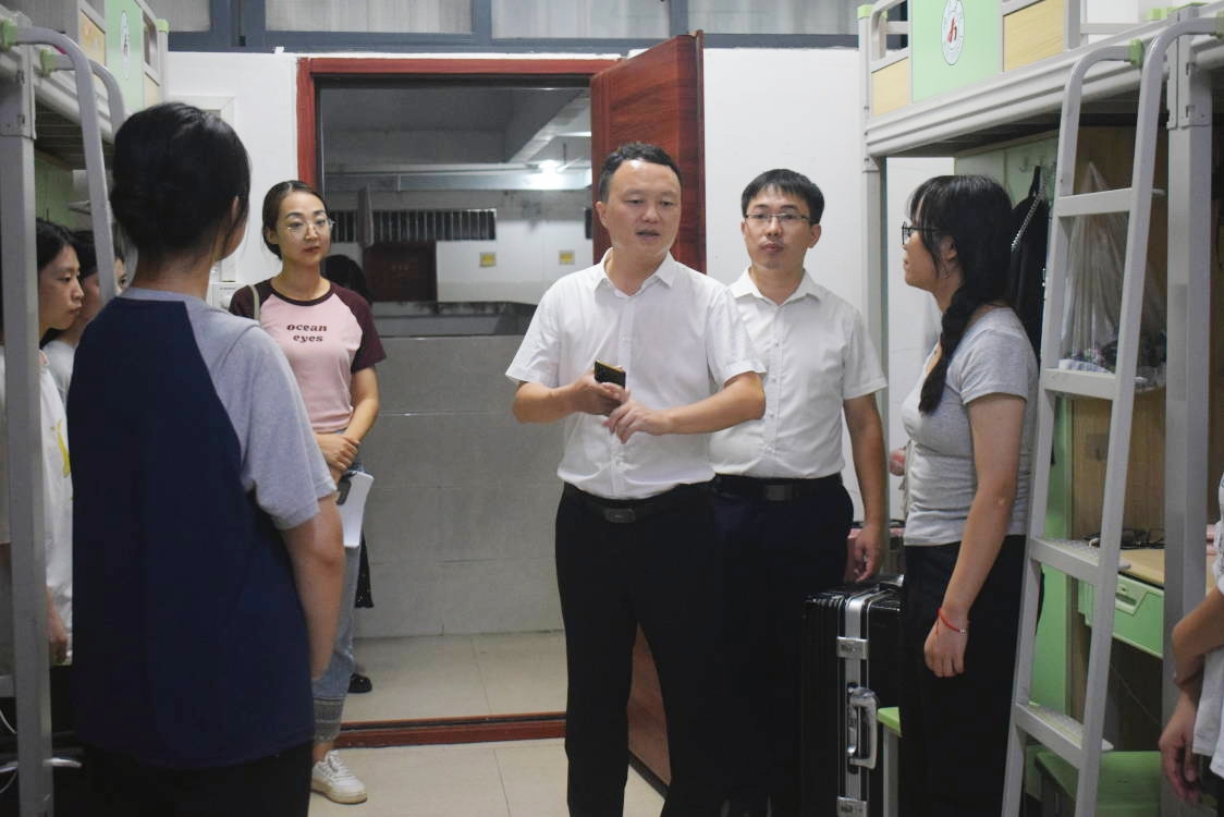 9月9日,永利集团304am登录院长李晓东,学院党委副书记韦正,辅导员覃凤香、谢恋情以及各班班主任走访新生宿舍。
