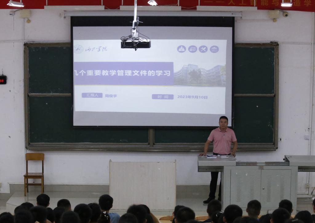学院领导班子就分管工作分别从学籍管理、课堂行为规范教育、安全教育、学生常规管理教育等方面做出强调,帮助2023级新生尽快适应大学生活。(作者:李妍、王诗雯 拍摄:李妍、王诗雯 校对:劳旻旻 审核:覃宝山)