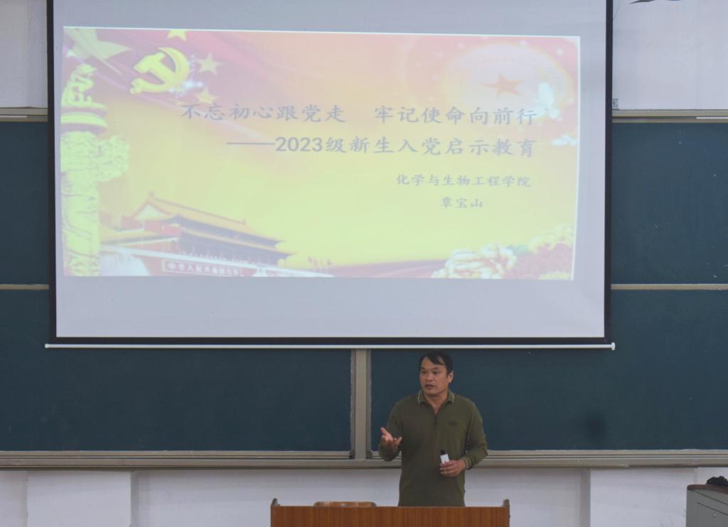 10月11日,永利集团304am登录在格致楼负103室召开入党启蒙教育课。2023级全体同学参加教育课,本次课程由学院党委书记覃宝山主讲。