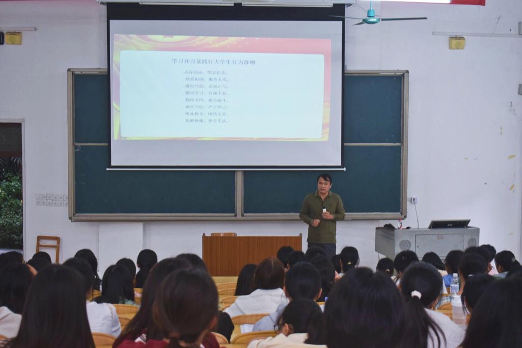 覃宝山从身边实际例子出发,引导同学们树立正确价值观,希望同学们不忘初心,继续前行。(作者:李妍 拍摄:李妍 校对:劳旻旻 审核;覃宝山)