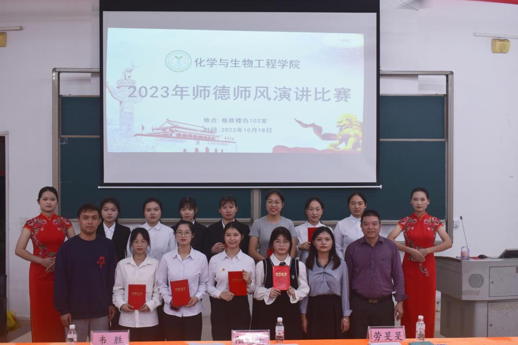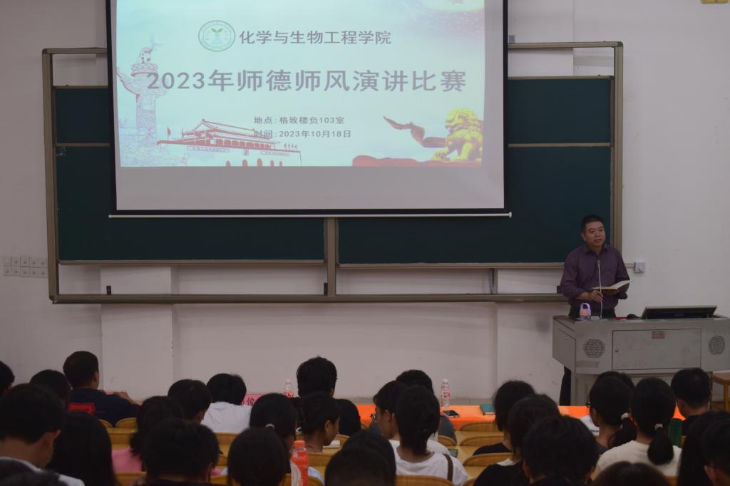 10月18日,永利集团304am登录在格致楼负103室举行2023年师德师风演讲比赛。学院副院长陆俊宇,辅导员韦胜、劳旻旻担任此次比赛评委老师,2023级生物科学与化学专业全体学生观看比赛。本次比赛由团委学生会文艺团刘唐婧主持。