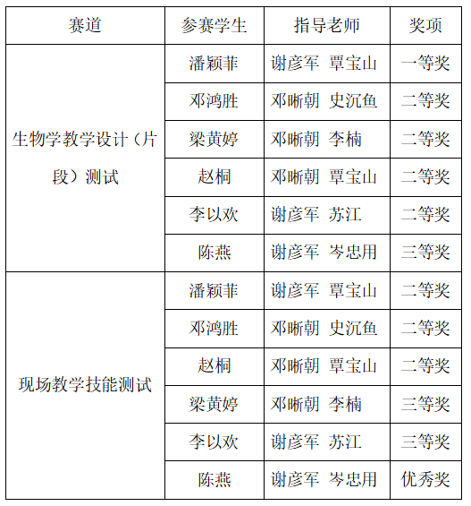 【喜讯】永利集团304am登录学子在全国第十二届“华文”高校生物师范生教学技能测试与交流展示活动中喜获佳绩