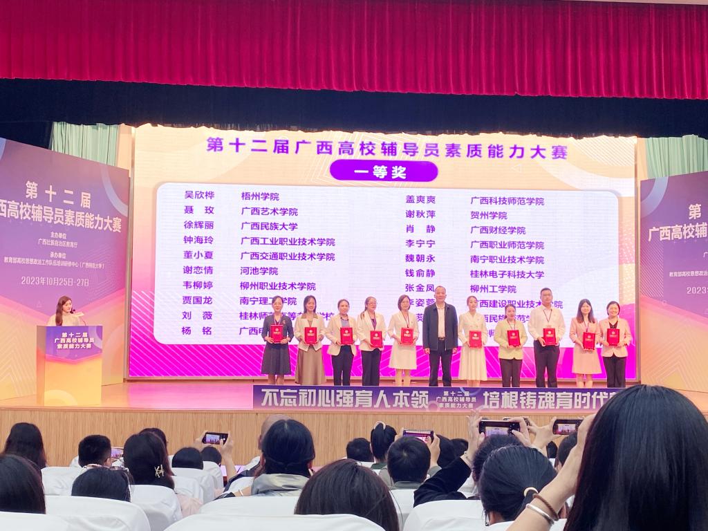 10月25-27日,由广西壮族自治区教育厅主办,教育部高校思想政治工作队伍研修培训中心(广西师范大学)承办的第十二届广西高校辅导员素质能力大赛顺利闭幕。