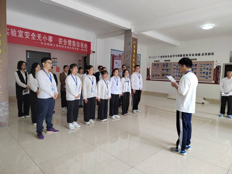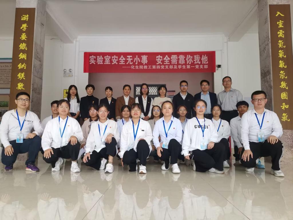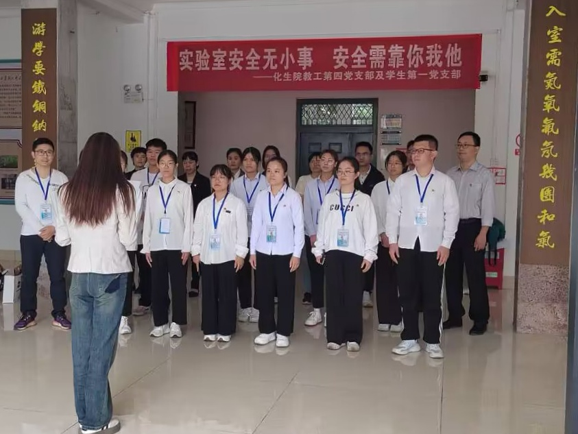 11月8日,永利集团304am登录教工第四党支部和学生第一党支部在化生东楼一楼大厅举办实验室安全纠察队成立仪式。永利官网教职工第四党支部书记辛磊,学生第一党支部书记谢恋情出席仪式,党支部同志代表参加仪式。
