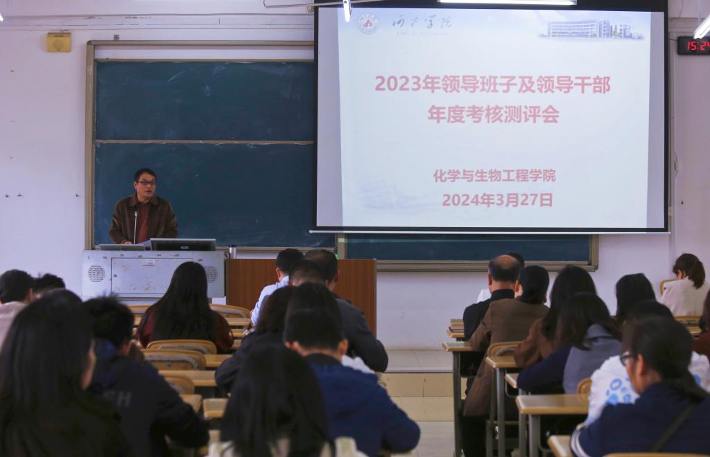 3月27日,永利集团304am登录在格致楼202室召开2023年领导班子及领导干部年度考核测评会。学院领导班子成员及全体教师参加本次会议。会议由党委书记覃宝山主持。
