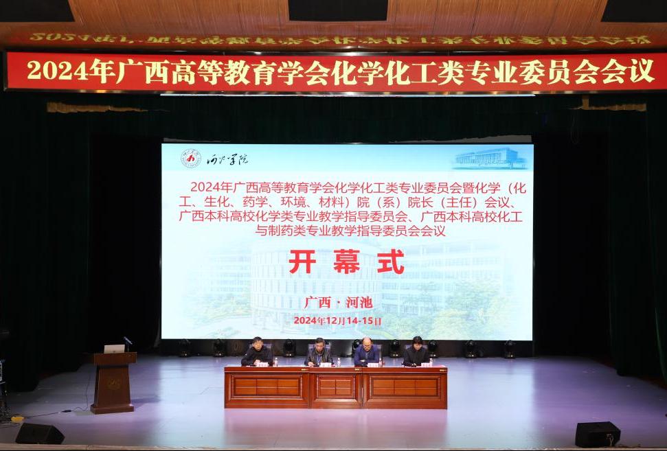 12月14日,2024年广西高等教育学会化学化工类专业委员会暨化学(化工、生化、药学、环境、材料)院(系)院长(主任)会议在我校举办。广西高等教育学会化学化工类专业委员会主任委员、广西师范大学梁宏教授,学校副校长贺卫国教授,广西高等教育学会化学化工类专业委员会常务副主任委员、广西大学童张法教授,广西高等教育学会化学化工类专业委员会秘书长、广西大学化学化工学院党委书记、院长周立亚教授,以及来自区内的广西26所高校化学(化工、生化、药学、环境、材料)院(系)负责人、教师代表及支持单位120余名代表参会。