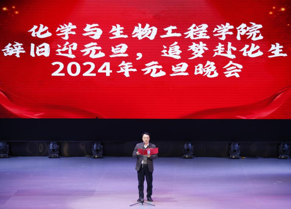 李晓东为晚会致辞,回顾学院2023年取得的成绩,他表示,这些成就离不开全体师生的付出与努力。在即将到来的2024年,李晓东希望大家整装再出发,勇毅前行,不断续写化生学院的新篇章。